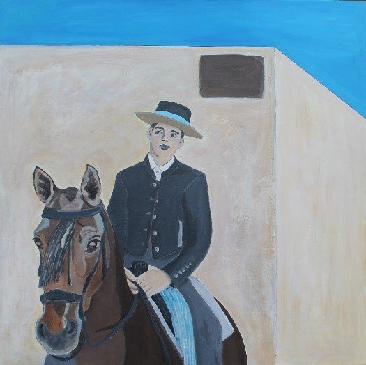 Symboler og farver fortæller historier for mig. Maler i Naivistisk Malegruppe.